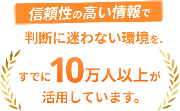 信頼性の高い情報で、判断に迷わない環境を、すでに10万人以上が活用しています。